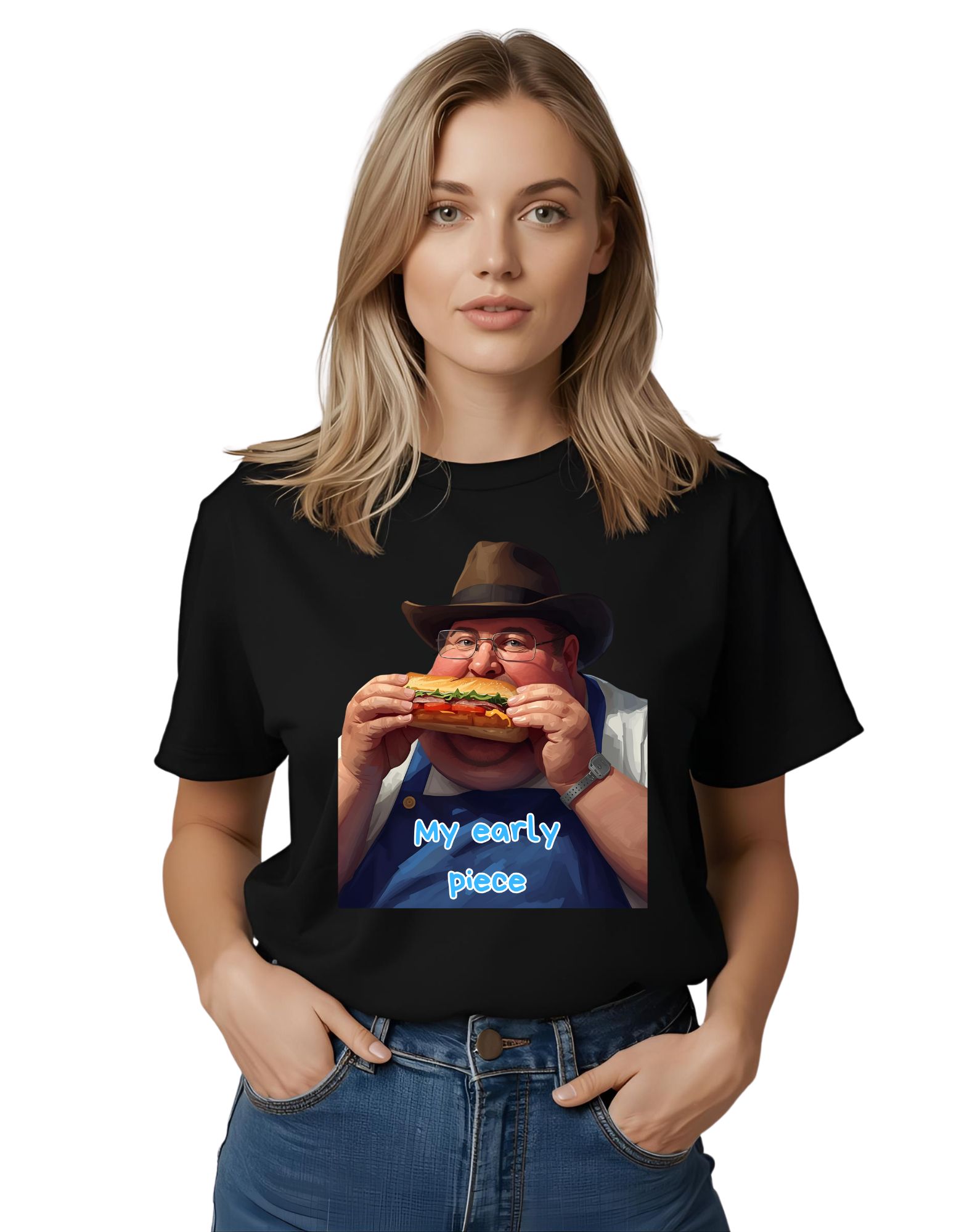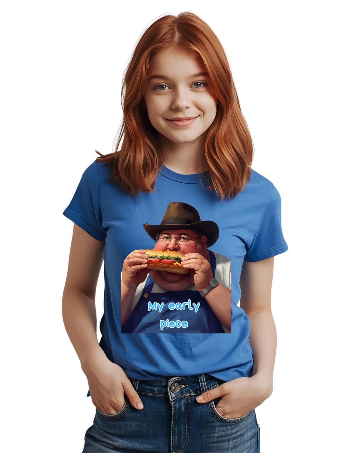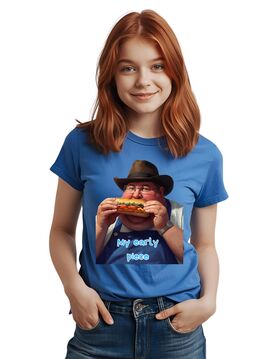 T-Shirt, Marke Friut of the Loom, 100% Baumwolle, wird nach Bestelleingang gedruckt. Digitaltransfer Druckverfahren. Motiv auf T-Shirt in den Farben Weiß, Blau, Schwarz.
