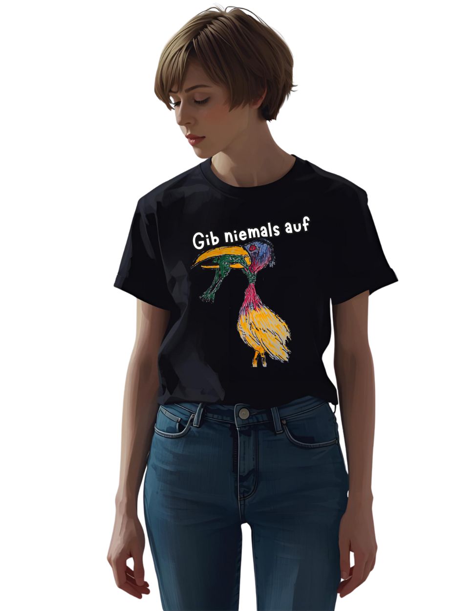 Schwarzes T-Shirt, Marke Friut of the Loom, 100% Baumwolle, wird nach Bestelleingang gedruckt. Digitaltransfer Druckverfahren.